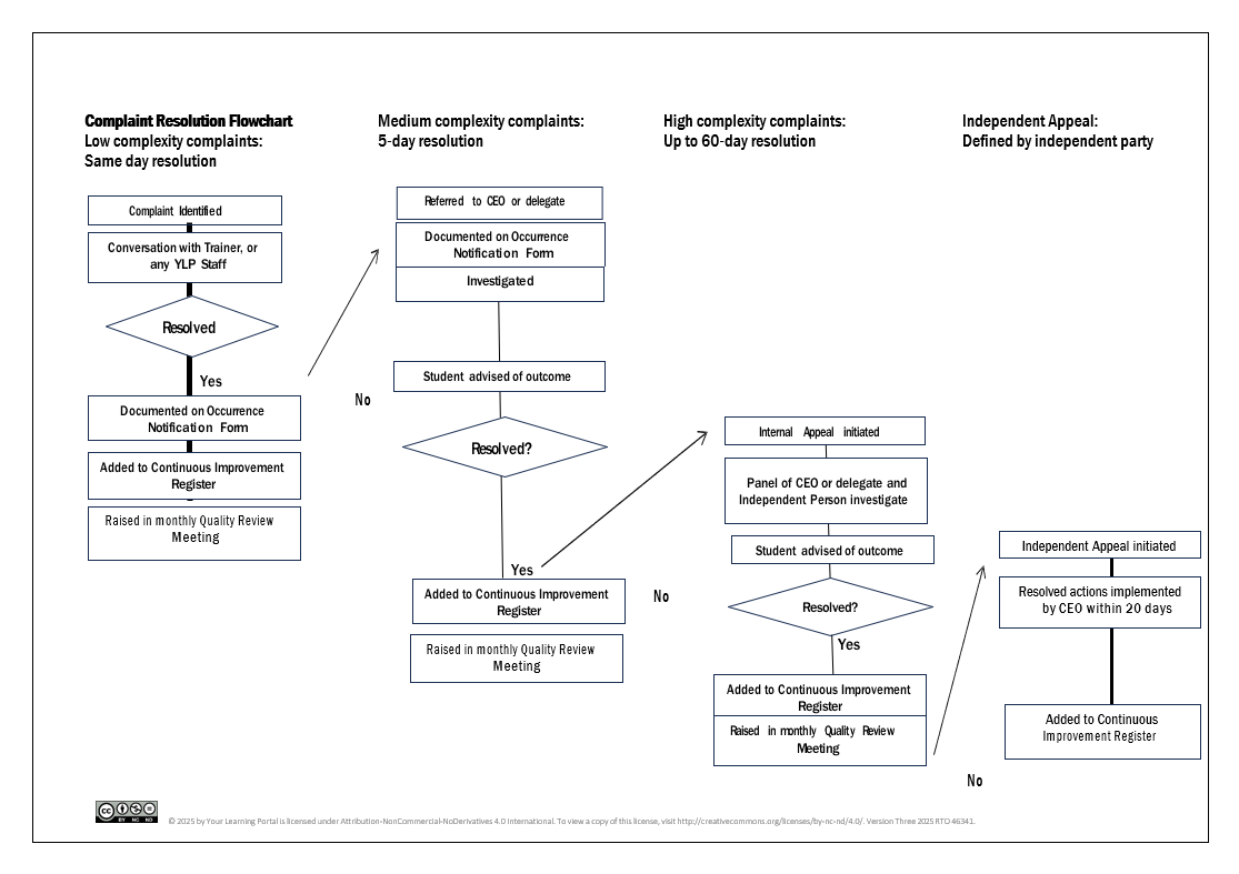Your Learning Portal are committed to effective complaints management by managing complaints in an accountable, transparent, timely and impartial manner.